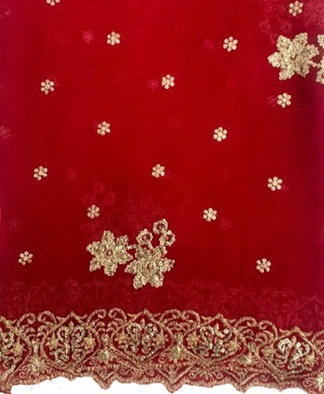 Pinkish Red and Golden crinkle chiffon dupatta.